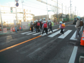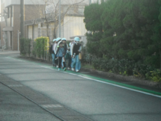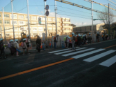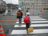 今朝は南門で子供たちを迎えることができました。信号機は新しくなりましたが歩道が完成していないので、やはり、中学生が不便そうでした。
