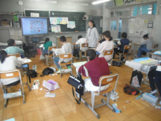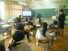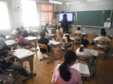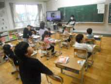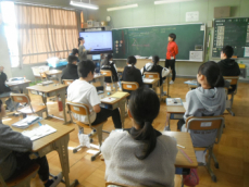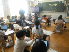 4年生は社会科の授業でした。浜松市の発展に尽くした人々のことを調べ、スライドにまとめて発表していました。私が訪れた時は、テレビジョンの生みの親、高柳健次郎さんのことが発表されていました。ついこの間まで、ブラウン管式の大きなテレビが、いつの間にか手のひらにも乗るようになってしまいました。