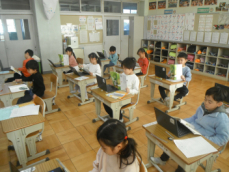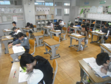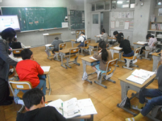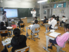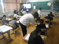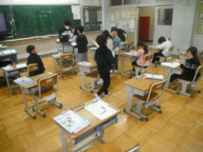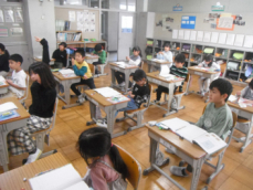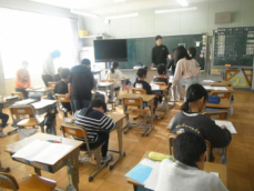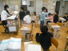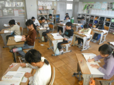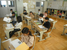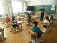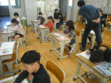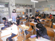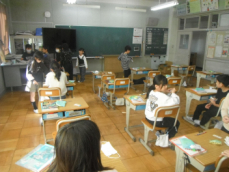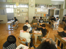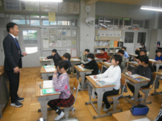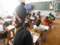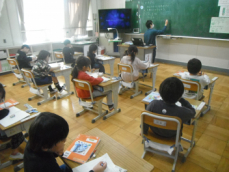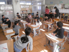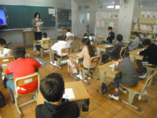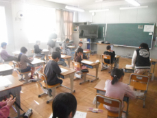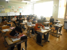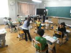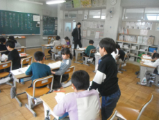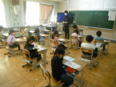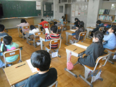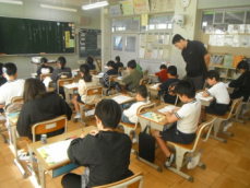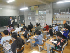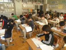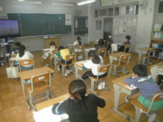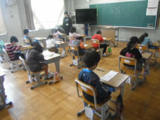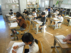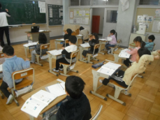 4時間目です。4年生は国語の授業でした。先日、子供たちが行った漢字テストを担任が一人一人に返却していました。喜んでいる子、ちょっと残念そうな子、色々な表情の子供がいました。