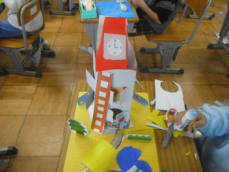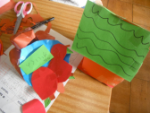 3時間目です。2年生は図工の授業でした。カッターを使って、一人一人が思い思いの家を作っていました。カラフルで細かいところも丁寧に仕上げた作品が多くみられました。