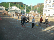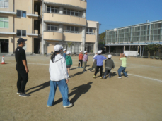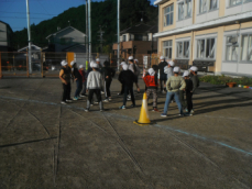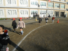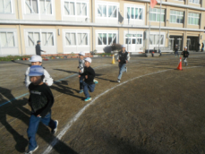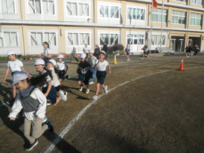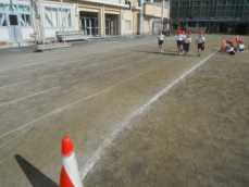 8時から、再来週に迫った持久走記録会に向けて全校での練習が行われました。今日は、4分間で何周走ることができるか挑戦していました。子供たちが走っているときに、体育主任から呼吸法について話がありました。