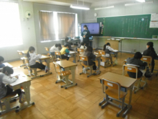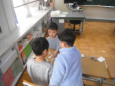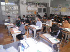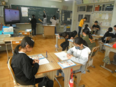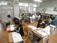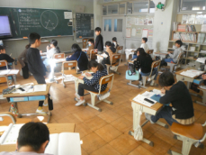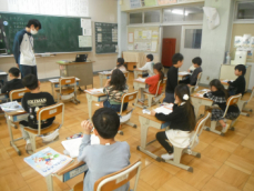 2時間目です。3年生は理科の授業でした。「太陽の光」の学習を振り返るプリントに挑戦していました。子供たち一人一人が日光の特徴(まっすぐ進むこと、物を温めることetc.)をつかんでいたようでした。