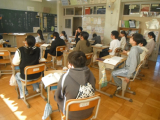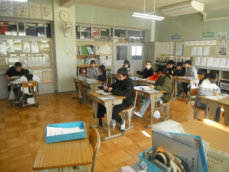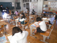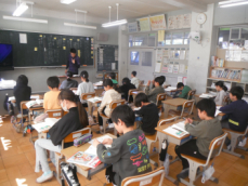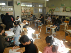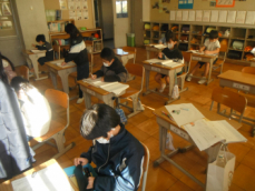 5時間目です。2年生は書写の授業でした。書き初めの練習だそうで、フエルトペンで「ふるさと」と書いていました。たいへん静かな中で、一人一人が真剣に取り組んでいました。