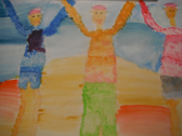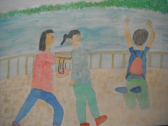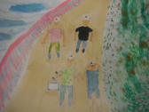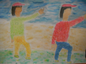 5年生は図工の授業でした。臨海学校の思い出を水彩画で表現していました。画用紙に色の乗せ、乾いた後に別の色を乗せ、味わい深い色を作っていました。