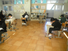 6年生も国語の授業でした。同音異義の漢字の使い方を学習していました。「会社にツトめる」は、努める、務める、勤める、のうちいったいどれなんだろう、と考えていました。