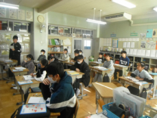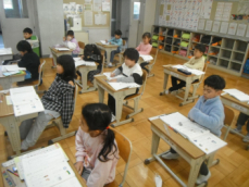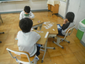 2年生も国語の授業で説明文について勉強していました。おもちゃの作り方を説明する文章を書くんだそうです。書く順番が大切だ、と担任が説明していました。