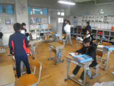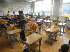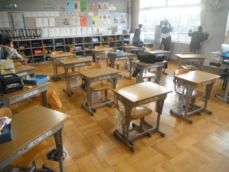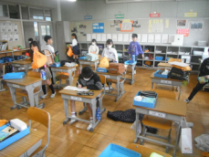 8時前、登校直後の各クラスの様子です。教科書やノートを机に入れたり明日の予定を書いたり、各々の子供が思い思いに過ごしていました。