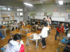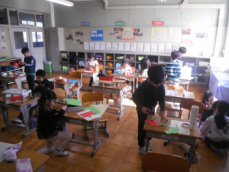 2時間目です。1年生は国語の授業でした。「たぬきの糸車」を読んでいました。「おかみさんは、捕まえたたぬきを、なぜ、逃がしてしまったんだろう。」という担任の問いかけに、真剣に答えていました。「やっぱり、かわいそうだったから。」という意見が多くみられました。