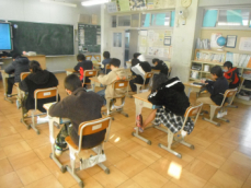 5年生は浜松市学力調査、算数の問題に取り組んでいました。結果を指導の参考にしていきます。