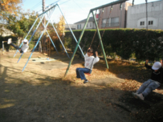 昼休みの様子です。図書館で本を探したり、運動場でドッジボールや鬼ごっこ、砂遊びやブランコをしたり、一人一人が思い思いの過ごし方をしていました。