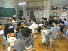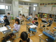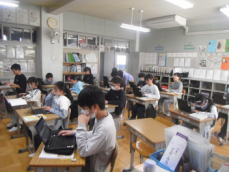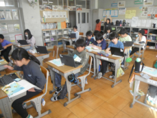 4年生も国語の授業でした。いつ襲って来るかも分からない、地震や台風などの天災に備えて、普段からどんなことをすればいいのか調べていました。一人一人がそれぞれのテーマを持って、HPや図鑑を見ていました。備えあれば患いなし、転ばぬ先の杖ですね。