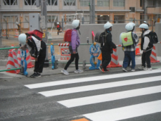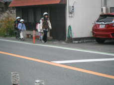 •  今朝は南門で子供たちを迎えることができました。私の姿を見ると、多くの子供たちが元気な挨拶をしました。たいへん気持ちの良い朝となりました。子供たちは横断歩道を渡り終えると、乗用車の運転手さんに「止まっていただき、ありがとうございました。」と頭を下げていました。たいへん立派な、心温まる姿です。