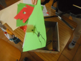6年生は理科室で てこ の実験をしていました。てこの原理を使ったおもちゃ、モビールを一人一人が作っていました。モビールの場合、支点の位置は簡単に分かりますが、力点と作用点はどちらがどちらか難しいですね。どっちでもいいんでしょうか。