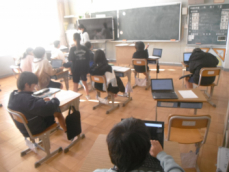 3年生は国語の授業でした。「猿も木から落ちる」や「石橋をたたいて渡る」などの慣用句や故事の意味を調べていました。それらを普段の生活の中でも使うことができると、格好いいなぁ、と思います。