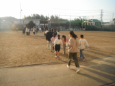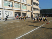 2、3時間目です。持久走記録会が行われました。低学年は3分間、中学年は4分間、高学年は5分間で運動場を何周走ることができるか、一人一人が挑戦しました。