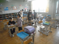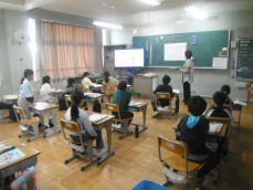 3年生は理科の授業でした。先日の実験では回路に色々なものを挟んで、通電するか否かを確かめていましたが、今日はその実験の結果から考えられることを話し合っていました。「鉄は電気を通すよね。」「木やプラスチックはだめだなぁ。」などという子供たちの声を聞くことができました。