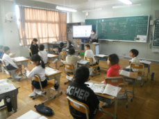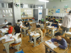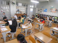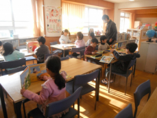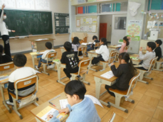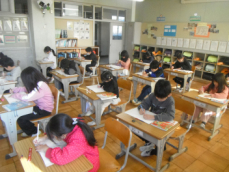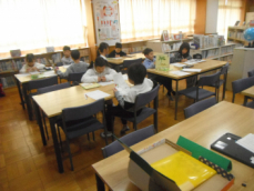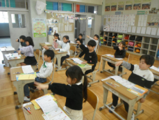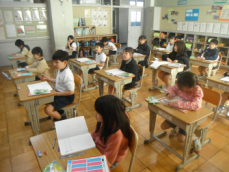 2年生も国語の授業でした。ワークブックを机の上に出し、「野原」や「番ごう」などの学習した漢字を思い出して、それに書き込んでいました。日常生活では、およそ2,000の漢字を目にするそうです。頑張って、一つずつ覚えてください。