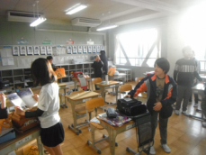 4時間目です。2年生は生活科「うごくうごく わたしのおもちゃ」の授業でした。1年生を招待して、自分で作った動くおもちゃを楽しんでもらっていました。1年生が本当に楽しそうに遊んでいました。