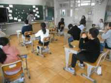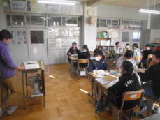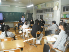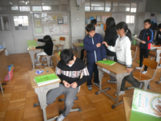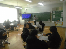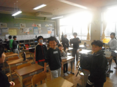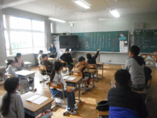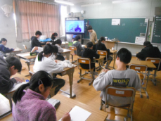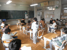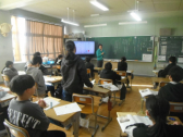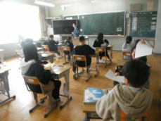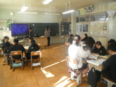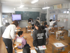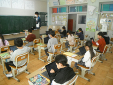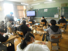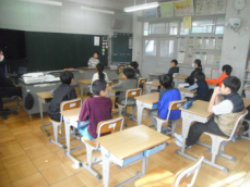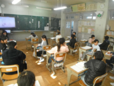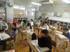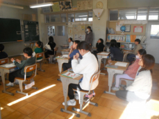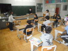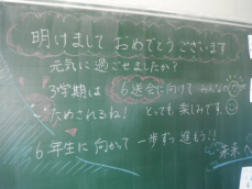 6年生は冬休みの思い出を一人一人が黒板の前で発表していました。家族で出掛けたことや大晦日、元旦の出来事を発表している子供が見られました。