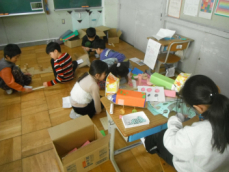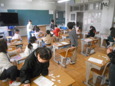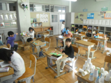 4時間目です。2年生は生活科の授業でした。いよいよ、来週のこの時間に1年生を迎えて遊ぶのだそうで、ゲームの仕上げをしていました。来週が楽しみです。