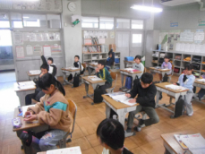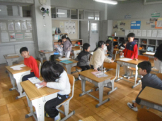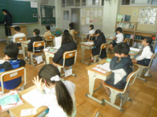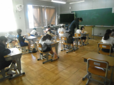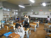 3時間目です。3年生は国語の授業でした。「庭」や「研」など新しく習った漢字を練習していました。「研の石を取ってしまうと、神社の鳥居だ。」と言う子供の言葉に感心しました。