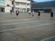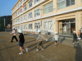 運動場では5年生がティーボールに挑戦していました。味方が投げたボールを打っている子供もいました。高く上がった打球を上手に取っている姿も見られ、感心しました。