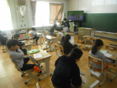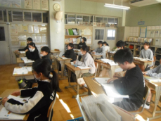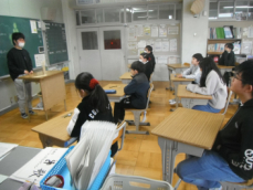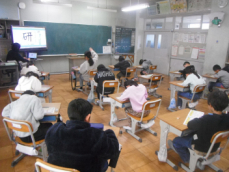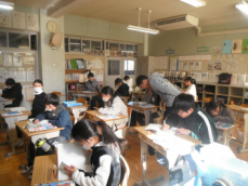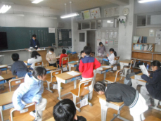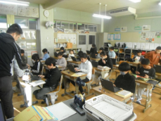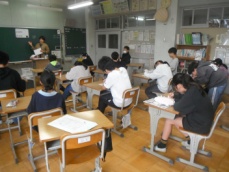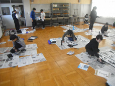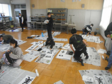 6年生は広い音楽室を利用して書き初めの練習をしていました。「四季の美」という4文字を、一生懸命に太筆で書いていました。冬休みにはそれぞれの家庭で挑戦し、始業式の日に作品を2枚持ってくるんだそうです。