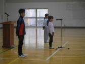 8:10から体育館にて3学期始業式が行われました。教頭による始めの言葉の後、児童代表の言葉、校長の話、校歌斉唱、代表委員の任命、表彰が続きました。みんな静かに参加することができました。