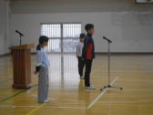 まず、開会式の様子です。代表児童が今までの練習の様子や今日の目標を発表しました。
