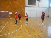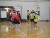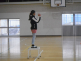 体育館から元気な声が聞こえてきました。のぞいて見ると、4年生がキャッチバレーボールに挑戦していました。相手から来たボールを扱う一人目はボールをキャッチしてもいい、ということだそうです。キャッチ→トス→アタック、という3段攻撃ができるようチーム練習に取り組んでいました。