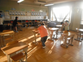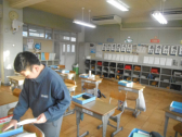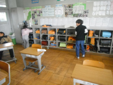 4時間目です。3年生は教室の大掃除をしていました。ロッカーの中や机、椅子の足など、いつもの掃除では手の届かないところを一生懸命にきれいにしていました。
