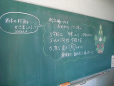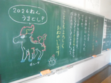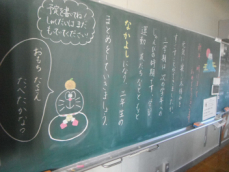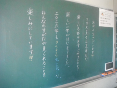 子供たちが登校する前に各教室をのぞいて見ました。すると、黒板には子供たちを迎える言葉が担任によって書(描)かれていました。これを見た子供たちは、きっと、気持ちを新たにしたことでしょう。