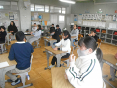6年生は一人一人の子供たちに卒業式の中で歌う式歌の楽譜が配付され、どんな歌なのか確認していました。3学期は「あっ」という間に過ぎてしまいますので、今のうちによく分かっておこう、ということです。