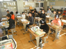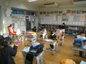 2年生は算数の授業でした。九九はすべての段を習い終わったようで、今日は九九の表づくりに挑戦していました。「八七」とか「五六」などと問い掛けられて、すぐに「56」や「30」などと言えるようになるといいなぁ、と思っています。