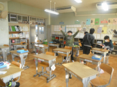 2時間目です。1年生は大喜びで席替えを行っていました。新しい座席に変わった後、早速、新しく隣同士になったクラスメイトとおしゃべりをしていました。