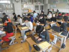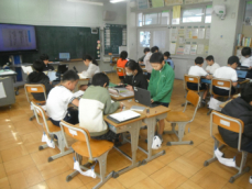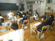 3年生も国語の授業でした。「くふうして詩を作ろう」という学習の目あてで、一人一人、ノートを開きいろいろな情景を頭に思い浮かべながら詩を作っていました。どんな作品ができたんでしょう。