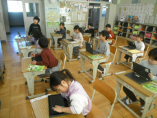 4年生は国語の授業でした。先日は詩集から選んだ好きなものを友達に紹介していましたが、今日は一人一人が詩を作っていました。ランドセルや上靴などになりきって、その気持ちを代弁する詩が多くみられました。
