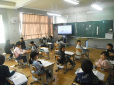 3時間目です。6年生は社会科の授業でした。1886(明治19)に起こったノルマントン号事件を取り上げ、なぜ日本人だけが多く死亡し英国船長は無罪だったのか、一人一人が考えていました。幕末に締結された不平等条約を改正するための運動の端緒となった事件です。