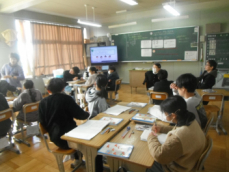 2年生は 学校だより や 学年だより などを使って、明日から始まる冬休みの生活について話し合っていました。規則正しい生活を続けることや、宿題を計画的に進めることについて担任が話していました。