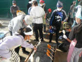 5年生は五平餅作りに挑戦していました。水と緑 北都の会、川山女性部の皆様の御指導と御協力の下、子供たちは自分たちが田植えや刈り取りを行った稲から取れたお米も入った御飯を炊き、それに味噌だれを付けて炭火で焼いていました。とっても良い香りがしてきました。さぞかし美味しかったことでしょう。