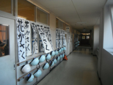 冬休みの間に子供たちが取り組んだ書初め作品が各教室の廊下に掲示されています。力作ぞろいです。