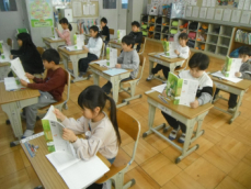 なんと、4年生も国語の授業でした。しかも、3年生と同様、詩を扱った授業でした。4年生は様々な詩集を読んで、その中から気に入った詩を見つけ、それをクラスメイトに紹介していました。何連もある詩、十数文字の詩、色んな詩を読んでいました。