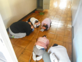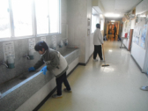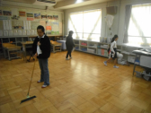 8:00から天白班ごとにわかれて、学校内の掃除が行われました。どの班も黙って一生懸命に教室や廊下をきれいにしていました。