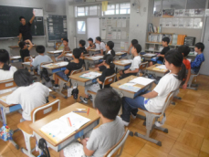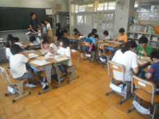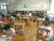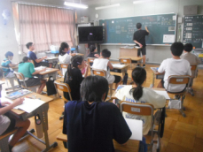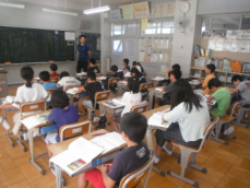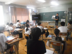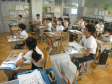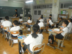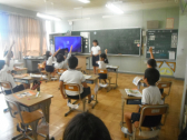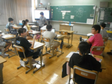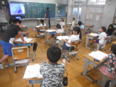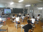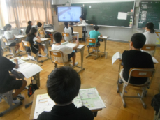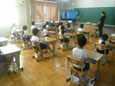 6年生は社会科の授業でした。源平の争いを学習していました。教師が話す、伊豆に流されていた頼朝が以仁王の令旨を受けて挙兵したこと、石橋山の戦いで大敗したことなどを興味深そうに聞いていました。