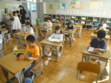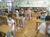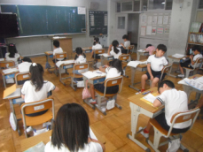 熱中症対策のため、子供たちは昼休みに室内で過ごしました。