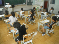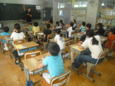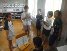 5年生の教室からは、「He can play soccer.」「He plays piano.」「Who is he?」というような英語が聞こえてきました。英語で友達を紹介し、聞いているクラスメイトがそれが誰なのかを当てる、というゲームでした。意外にも、すぐに誰なのか分かってしまっていました。