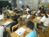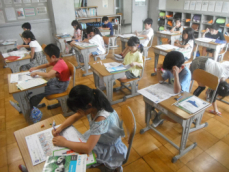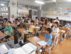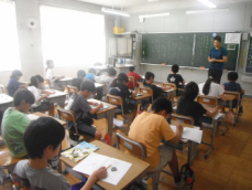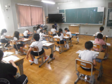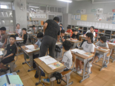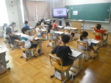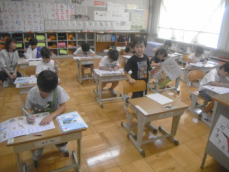 なんと、4年生も国語の授業でした。「ごんぎつね」という話で、一人一人が好きな場面を挙げ、そこで疑問に思うこと考えたことを書き表わしていました。この夏、東北・北海道地方におけるクマの被害について、ニュースで大きく取り上げられました。野生の動物と人間の共存・共生の道を探っていきたいものです。