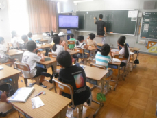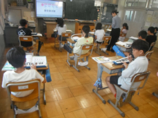 3年生は社会科「店で働く人」の授業でした。子供たちは普段の買い物を思い出し、ドラッグストアやスーパーマーケットで何を買い、なぜそこで買うのか考えていました。浜松には、郊外型の大型ショッピングセンターが数多くありますね。
