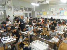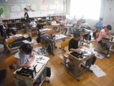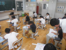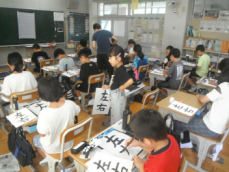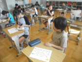 3年生は書写の授業でした。「木」という文字を毛筆で挑戦していました。始筆と終筆の押さえに注意し、一人一人丁寧に書いていました。3・4画目の払いの高さと2画目の縦画の長さに注意すると、バランスの良い字になりますね。