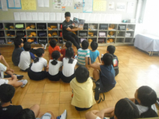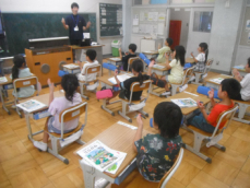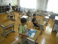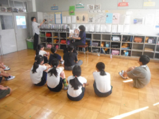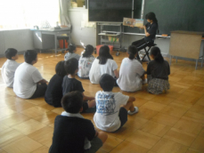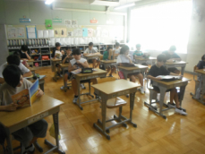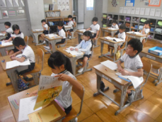 8時から、ボランティアさんと担任による読み聞かせが行われました。どのクラスの子供たちも静かに聴いていました。
